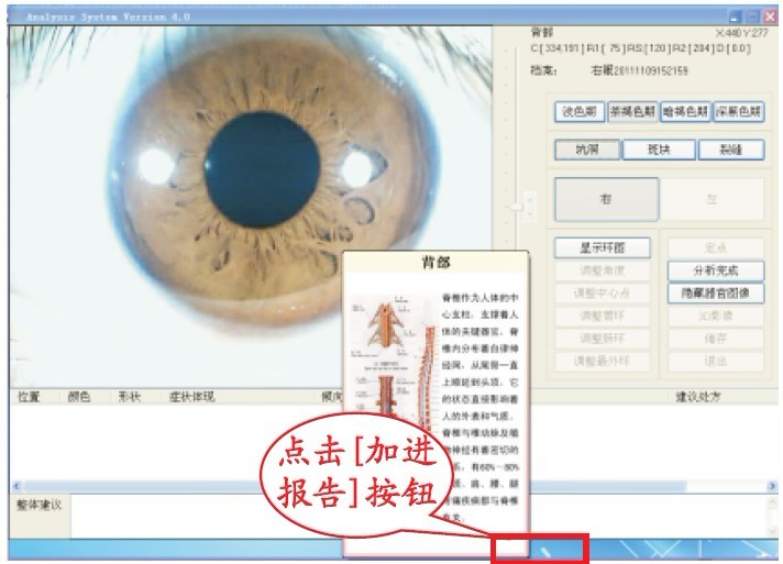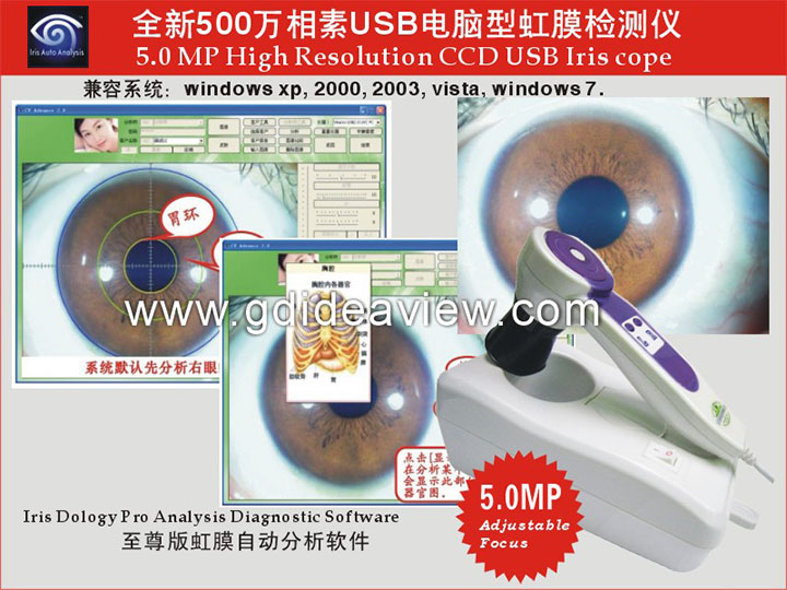 電腦型虹膜儀 采用進(jìn)口500萬像素CMOS傳感器 采用專業(yè)數(shù)碼高清影像處理芯片 鏡頭采用LED全光譜自然光與組合鍍膜鏡片 左右燈自由切換(電子式控制LED冷光源) 具有單鍵微控,數(shù)碼定格功能 準(zhǔn)確、快速顯示出(虹膜)影像潛在的變化 USB2.0穩(wěn)定傳輸,兼容性好 提供儲存,管理與打印客戶資料報告 操作簡單,快捷 附帶配件: 1.儀器主機 2.儀器手柄 3.8mm儀器鏡頭 4.手柄保護(hù)蓋 5.1.5M USB連接線 6.圖解虹膜學(xué) 7.光碟(虹膜軟件+儀器驅(qū)動+初級虹膜教育+使用手冊) 8.精品防震鋁箱